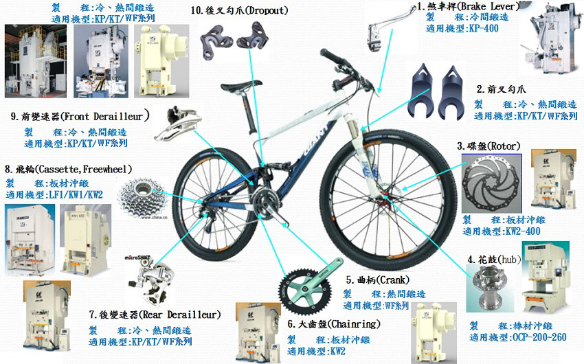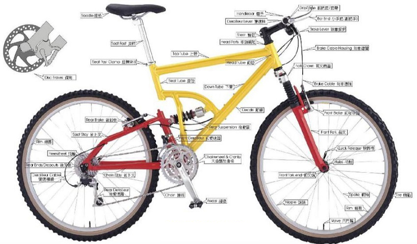 自行車的車架、輪胎、腳踏、剎車、鏈條等25個部件中,其基本部件缺一不可。