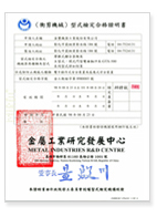 - 金豐率先取得勞委會推動沖剪機械驗證認證。
